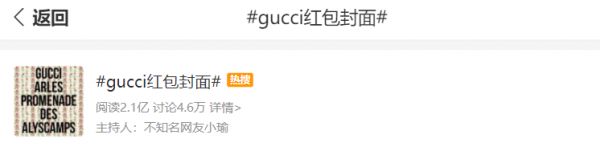 1月20日,#gucci红包封面#冲上微博热搜,阅读量超2亿。