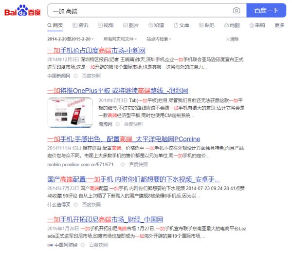 以“一加”、“高端”为关键词进行搜索。2014年一加旗下首款手机上市,随之便有了一加手机抢占高端市场的相关报道。而后几年里的报道里,一加逐步在中国以外的全球多个市场的高端档位站稳脚跟,成为各大机构高端手机榜单的常客,不管真实性如何,业界还因此有了“国内开花国外香”的说法。