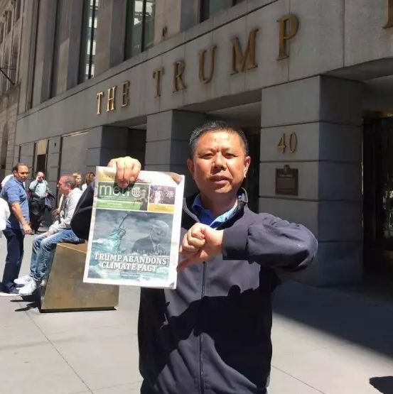 2017年6月2日上午,纽约阳光刺眼,位于华尔街大道40号的特朗普大厦门前出现了一位愤怒的中国人。
