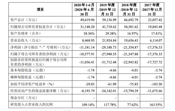 根据其招股书显示,2017年、2018年、2019年及2020年上半年,云知声营收分别为 6114 万元、1.97 亿元、2.19 亿元、8469 万元;净亏损分别为 1.74 亿元、2.14 亿元、2.92 亿元、1.12 亿元。公司3年半来亏损近8亿元,但营收才5.62亿元,同时研发投入较大,报告期内总计投入6.03亿元。