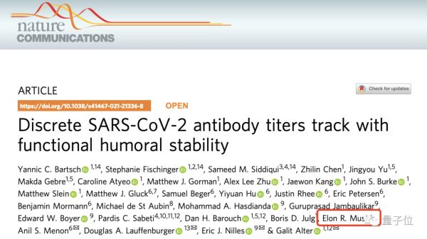 全球首富马斯克成了一篇新冠抗体研究论文的作者,论文还发在了最近一期《自然通讯》杂志上。