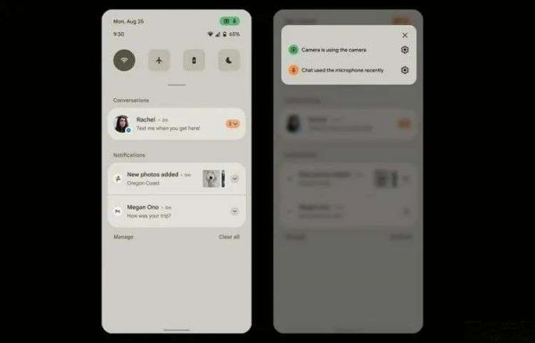 为什么这么说?首先,从目前传出的Android 12截屏显示,它加入了类似iOS 14和MIUI 12上的隐私提示功能。也就是说,如果有APP正在使用麦克风或摄像头,那么状态栏上就会出现一个非常醒目的标识。用户点击这个标识,就能看到到底是哪款软件正在使用这些传感器。