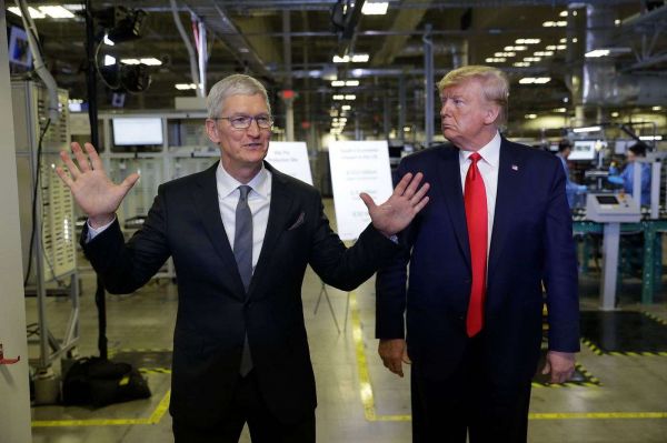 2019年11月,距离美国下一届总统选举刚好一年的时间,特朗普特地飞到奥斯汀跟库克见面,并参观了苹果的Mac Pro工厂。在白宫媒体面前,库克将Mac Pro称为(面向创意专业人士设计的计算机,售价为5999美元)是“美国设计、美国制造以及美国独创性的典范。” 两人一度靠得很近,库克一边在展示计算机的组件,而旁边的特朗普则点头表示赞。库克指出,这台设备的很多零件都是来自亚利桑那州和宾夕法尼亚州等关键州,特朗普曾承诺会给美国人带来更多的制造业岗位。