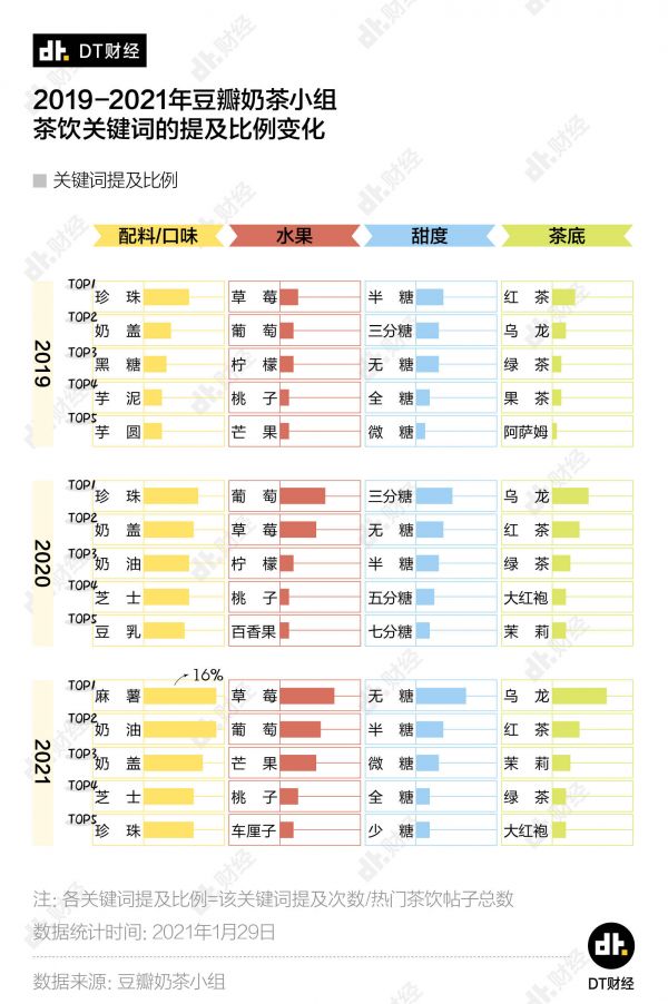 我们在豆瓣奶茶小组的所有帖子中,从水果、配料、甜度、茶底四个方面找到了近几年奶茶的变迁,也看到了年轻人对奶茶真实又矛盾的心理。
