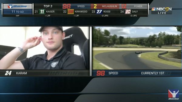 NBC体育网络对iRacing比赛的现场转播,图中画面均为电脑模拟画面而非现场拍摄|图片来自YouTube