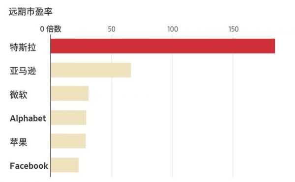 特斯拉与其他科技巨头远期市盈率对比