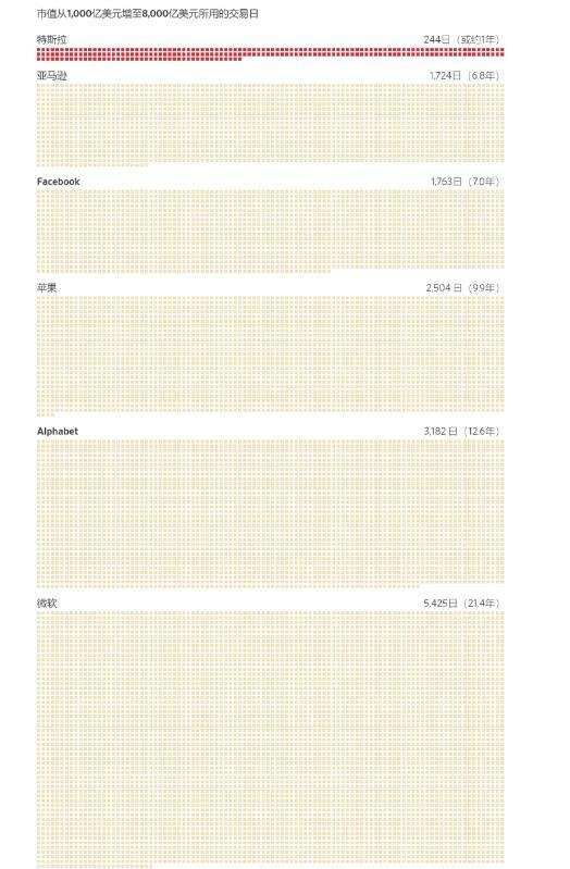 市值从1000亿美元增至8000亿美元所用的交易日