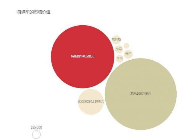特斯拉与其他车企每辆车的市场价值对比