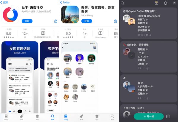 其中的聚聚是一家创业公司,2020年初该团队推出了第一个应用“Here”,主打实时语音社交,但在融资过程中遇到了一些问题,今年跟风推出了“聚聚”。“举手”的开发者美卓,据天眼查显示,其天使投资人是雷军,公司早于2014年被小米集团并购。