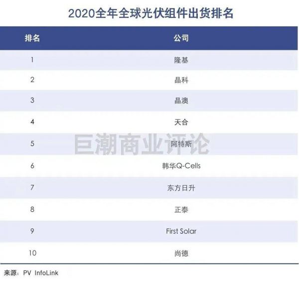 作为全球最大的单晶硅制造商,隆基股份也一直在下游组件领域发力,2020年已经取代了晶科能源,成为全球最大的光伏组件商。