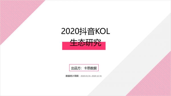在2021年农历年年初,卡思数据(ID:caasdata6)特别推出了《2020抖音KOL生态研究》,以期通过数据为创作者们提供更宏观、全面的参考,与此同时,针对2020年表现突出的5个赛道,我们也整理了一些创作建议供大家参考。