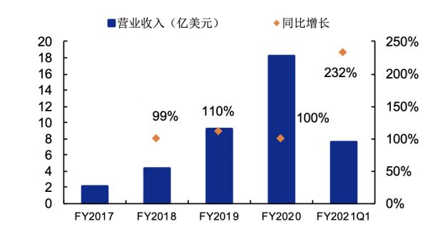 图:Peloton的收入及同比增速
