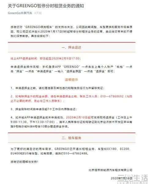 随着2019年3月《交通运输新业态用户资金管理办法(试行)》的落地,使得共享汽车平台的押金危机逐渐缓解,相关企业的退场也开始逐步健康化。其中2020年1月宣布停运的GREENGO绿狗租车在决定停运时,还推出了原路退还用户押金的方式,成为了新政后首个体面退场的共享汽车品牌。