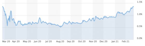 美国10年期国债收益率目前已接近去年疫情全面爆发前水平