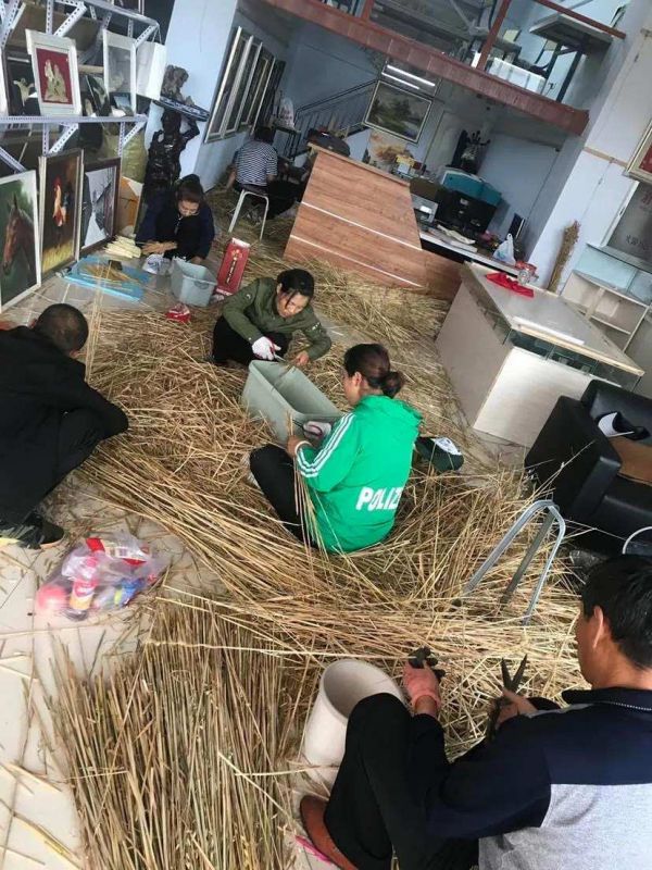 “贴麦秸纸这些工作都可以带回家做,我们就找了县里一些手巧的妇女,把麦秸领回家做,一张纸付给她们五块钱,合格的作品我们按件回收。”她说道。