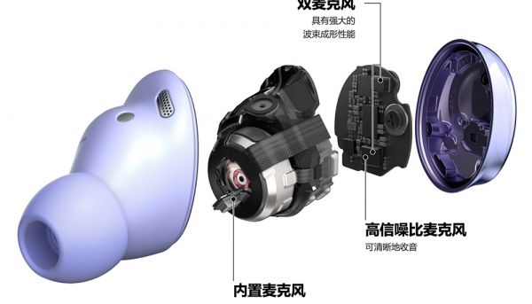 而在外形设计方面,三星直接将耳机设计为贴合人耳内部的“豌豆”形状,减少直接与风接触的面积,还有耳机上的外网与内风室来共同分散并削减风的影响。同时,三星还内置了高级软件来区分人声和风声,以确保就算有风接触,风声也不会进入麦克风。
