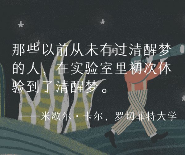虽然这个研究还处于早期阶段,卡尔希望他们的发现能够激励那些未来想要在梦里激发特定感官的研究,并更深入地挖掘其潜在益处。她和同事们最近分析了20个人在一周里记录的关于梦和心情的日记,他们发现清醒梦越强烈,第二天醒来后的心情越好。