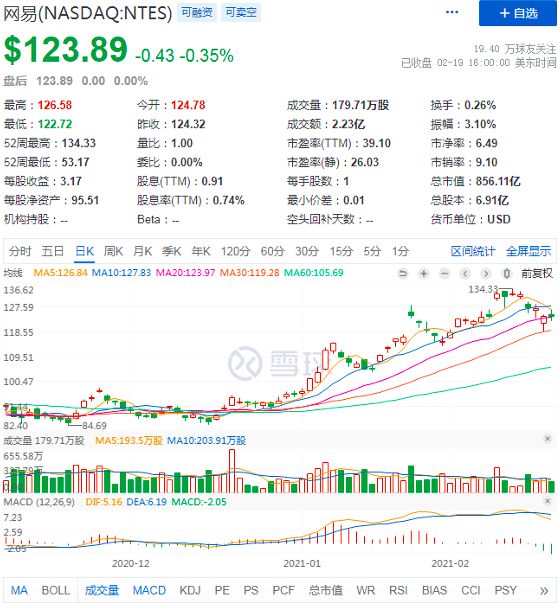 据雪球网数据显示,截止至美东时间2月19日16:00,网易美股总市值856.11亿美元,远超新浪、搜狐25.91亿、8.51亿美元的市值。而且,网易同时在港股上市,截止至北京时间2月19日16:08,网易港股总市值6616.55亿港元,在国内互联网公司市值排名中,也能排到前列。