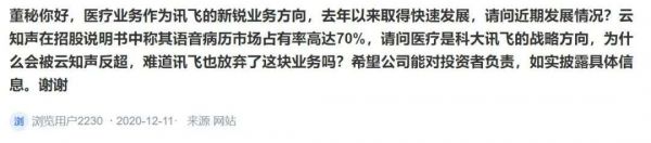 云知声的招股说明书公布后,科大讯飞的股东坐不住了,跑去深交所投资者关系互动平台发问:说好的战略方向说放弃就放弃了?我们要个说法!