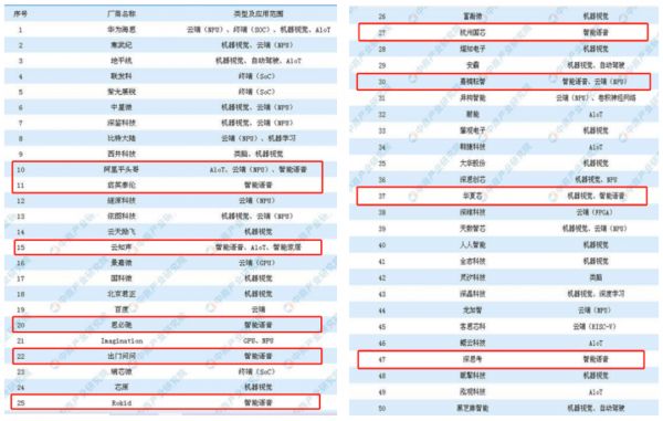 然而,这一领域同样高手林立。中商产业研究院列出的中国人工智能芯片50强榜单中,有10家的类型及应用范围都包括智能语音,其中甚至有阿里平头哥这样的巨头分支。