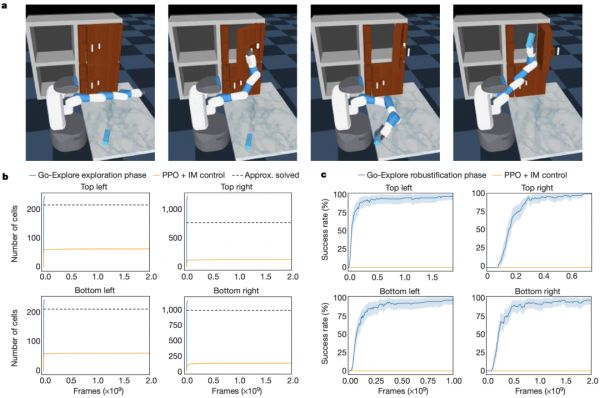 图|Go-Explore 可以解决一个具有挑战性的、稀疏奖励的模拟机器人任务(来源:Nature)