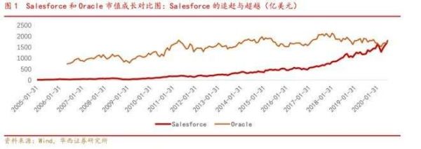 凭借这种创新,Salesforce的业绩一路狂奔。2019年其营收达到171亿美元,是2004年的55倍。Salesforce的市值也由此水涨船高,从2004年的14亿美元增长至今天的2266.89亿美元,2020年7月10日,它超过了甲骨文(Oracle),后者曾经是全球第二大软件公司。