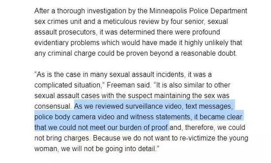 1,不起诉这个决定,是警察部门的性侵小组,和地检官办公室4位资深检察官共同做出的,4位检察官中性别分布是3男1女;