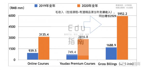 这里提到的网课分别包括网易有道的online courses 和 有道精品课dao Premium Courses。2020年分别贡献毛收入31亿元、28亿元,分别同比增长都超过2倍。