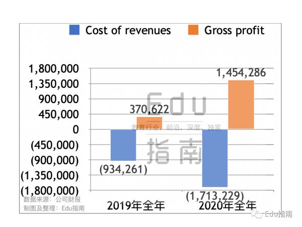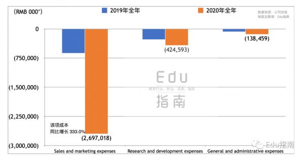 三项业务总计来看,2020年贡献毛利14.5亿元,其中在线学习服务“功不可没”。不过贡献毛利,并不意味着最后盈利。来到成本环节,在线学习同样是营销销售成本骤增的重要原因。