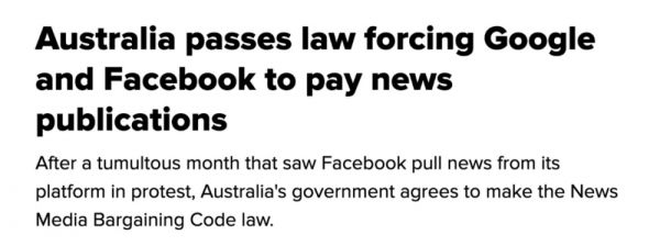 这项法案,这也成为了全球首个要求科技公司对新闻内容进行付费的国家法律。