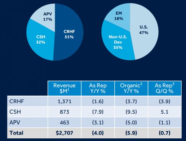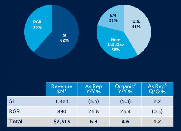 新兴市场:营收为13.14亿美元,占公司营收的17%,同比持平,有机增长+1%。