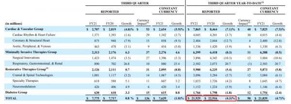 ▲美敦力2021前三季度财务数据