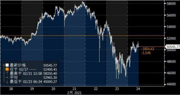 在2月22日到2月24日的2天里,比特币的价格又像SpaceX星舰一样以坠毁的姿态疯狂下跌,回到了4.5万美金/枚。23日有近50万人爆仓,22-24日两日内看多单爆仓金额达到了近58亿元美金。这架势,比特币官方应该在每一个玩家第一次买卖比特币时赠送一盒速效救心丸。