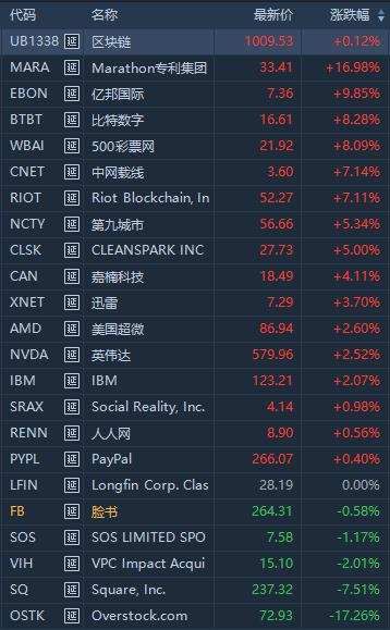 其中Marathon Patent(MARA.US)和Riot Blockchain(RIOT.US)是两家加密货币挖矿与区块链技术的上市公司,在比特币价格猛涨时,两股均创下三年来新高。今年马拉松股价上涨了近三倍,RIOT也涨幅超过100%。