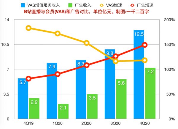 4Q20是B站广告业务连续7个季度同比加速度增长,可以预期的是,未来相当一段时间内广告业务的增速会持续高于B站大盘的速度,有望晋升为第二大营收支柱。在当前手游仍是它最主要收入来源、但受限于发布周期而波动的趋势下,需要一个变现能力强的业务顶上去。