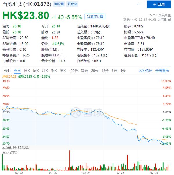 2月25日港股开盘,百威亚太股价急速下滑,最终收跌7.35%;截止发稿,续跌5.56%。可见,投资者对这份成绩单并不满意。