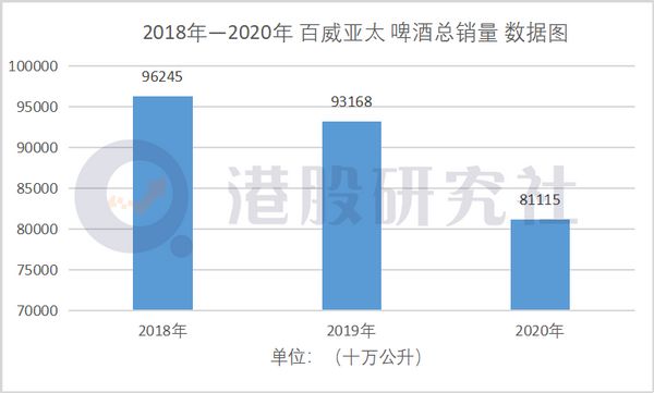 纵观近三年百威亚太的财报数据,2018-2020年,百威亚太的啤酒总销量明显下滑。