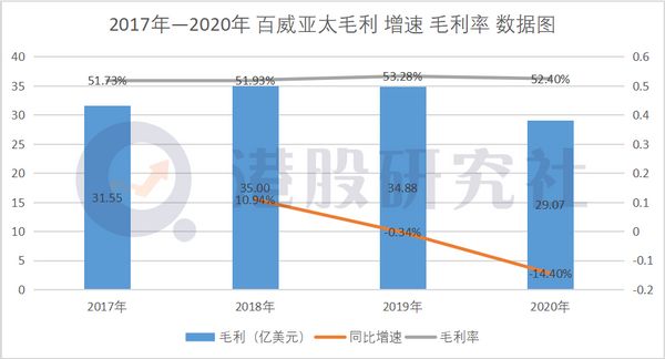 目前,国内CR5占比达71.6%,国内品牌毛利率约为30%-40%。在百威高端化策略下,2020毛利率为52.4%,虽然毛利率在平均水平之上,但毛利体量有所下降,2020年毛利为29.07亿美元,同比2019年的34.88亿美元,下跌14.40%。