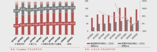 Trustdata统计显示,2020Q2美团外卖的市场占有率达到了68.2%,其次是饿了么的25.4%。在收入规模上,美团餐饮外卖业务收入达145.44亿元,是阿里本地生活收入71.01亿元的两倍有余。