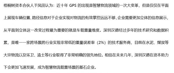 「深圳汉德」获过亿人民币B轮和B+轮融资,为大宗货物运输提供车载智能称重服务