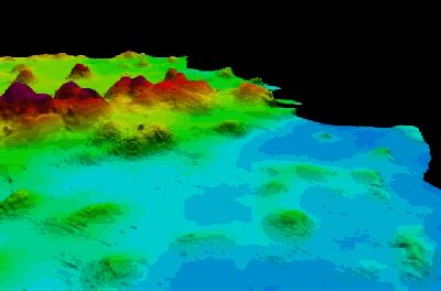 这两个礁之间,蓝色表示水比较深的地方,这个是卫星遥感的得到的数据。