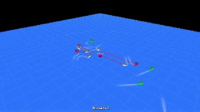 比如说,当一群无人艇去攻击对方的无人艇时,就像我们打篮球一样,单对单时如果感觉对方能力比自己强,那么另一个队友就会从旁协防一下,如果一个队友还不够,那就再过来一个包夹一下,打完之后又分散去对付另外的目标。