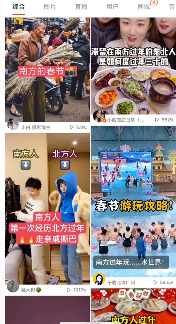 返乡过年后,硬糖君更是发现老家亲戚都在玩快手。而南北年俗的差异历来是热门话题。今年春节,许多快手用户便靠着拍“南北方过年差异”“南方人第一次在北方过年”等视频,收获动辄百万、千万的播放量。不过一些视频追求幽默效果,内容难免夸张、片面。