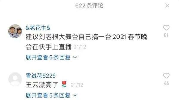 赵家班拥抱快手,最大受益方还是喜剧行业。演员通过这一平台,能及时地、集中地接受观众反馈,用于指导后续创作。赵家班的快手号下,不乏老铁贡献脑洞和创意。曾有粉丝留言:建议刘老根大舞台自己搞一台2021春节晚会在快手上直播。