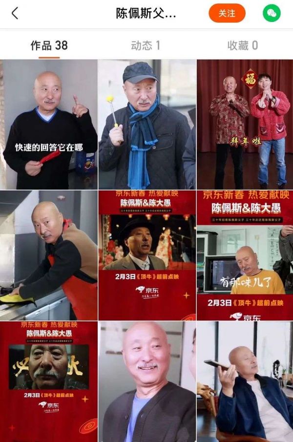 潘长江、陈佩斯、朱时茂等知名演员,摇身变成资深老铁,将小品剧场搬进快手。其中,陈佩斯主要分享逗趣父子的日常,在代际的观念碰撞中制造热梗段子,将欢乐情绪传递给数百万粉丝。