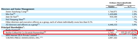 由于现在还未披露2020年年报,我们就以2019年年报为例,外部股东中仅次于百度的就是Baillie Gifford,这是一家苏格兰资产管理机构,有着上百年的历史。