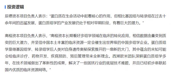 36氪获悉,生物科技公司「西湖欧米」今日宣布完成数千万元种子轮融资,该公司从事将蛋白质组学研究应用于临床辅助诊断。本轮融资由辰德资本、高榕资本联合领投,高瓴创投跟投。融资将用于人才招聘、原创技术突破、临床检验所落地、研发合作拓展等。