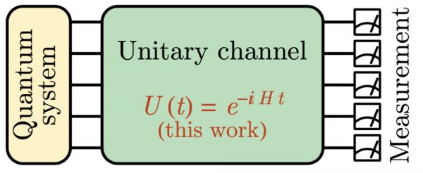 我们在论文中提供了思考这个问题的另外一种方案。如图所示,我们在这一方案中利用一般的具有混沌性质的哈密顿量(哈密顿量:决定物理体系如何演化的一种数学描述)来对系统进行演化,进而在计算基底中进行投影测量。换句话说,这些投影角度由随机演化所决定。