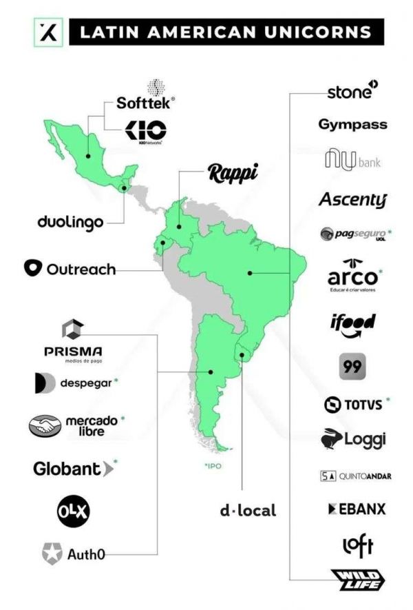 拉美独角兽分布