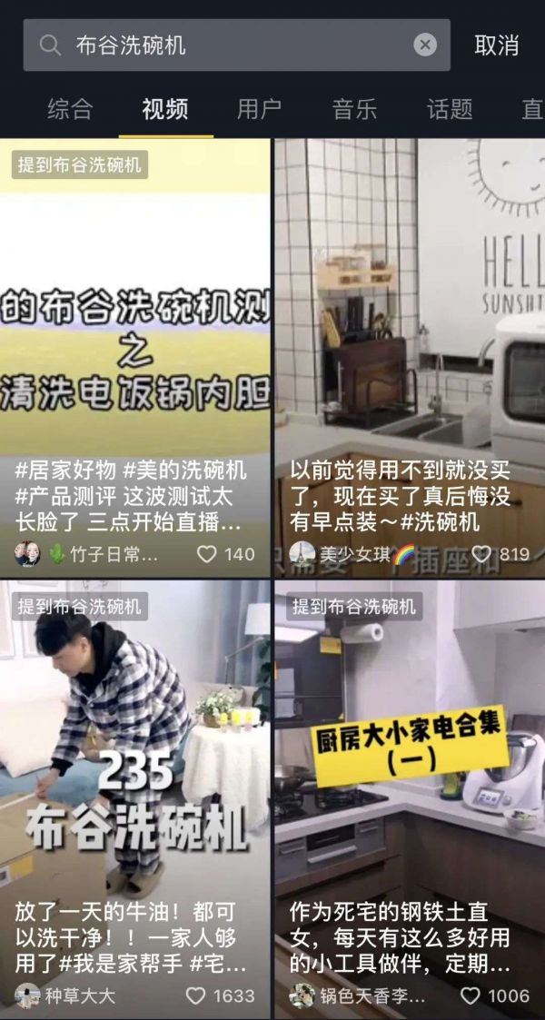 美的旗下的一款布谷洗碗机是一个代表案例。由于品类小众,这款产品在启动阶段并未从电商平台获得太多流量扶持,品牌转而在抖音找到多位达人做内容分发,通过达人种草将布谷洗碗机助推为品类第一,目前在抖音的直接代理销量达到14000台。